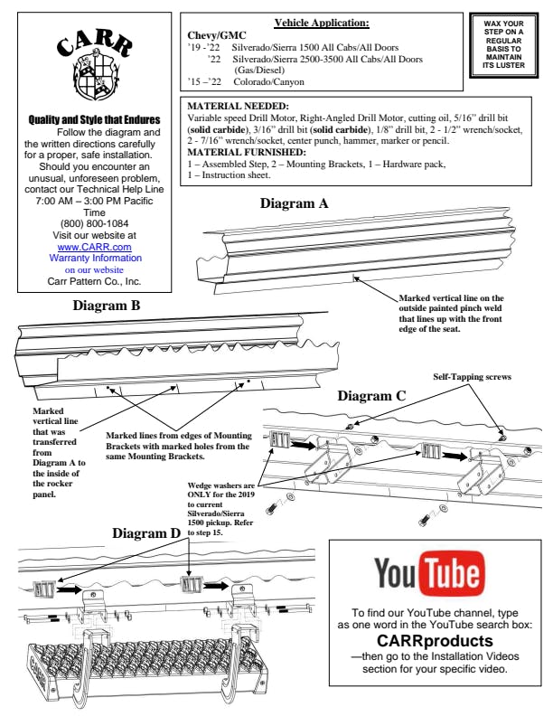 Do you need a step that works as hard as your truck? Look no further than the NEW CARR MAXgrip Side Step, built to serve you and your fleet. Engineered for safety first with our aggressive MAXgrip treads, heavy-duty 500 lb weight capacity rating, and protective end caps. Our rugged, ergonomic design affords comfortable access to your cab while delivering unique style and appeal across the entire fleet. In addition, the exclusive CARR multi- mount system makes for easier installation and furnishes a precision fit for your specific work truck.