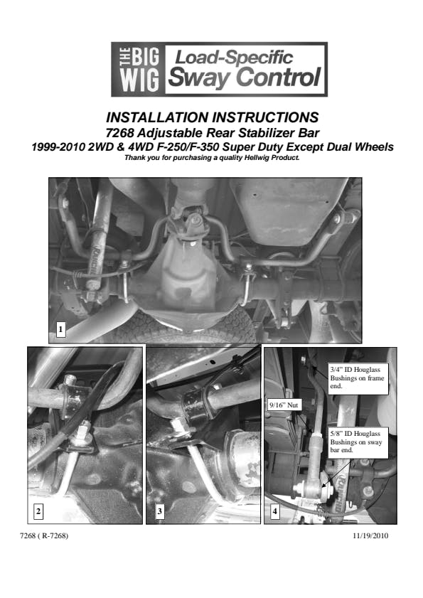 For your money, the best aftermarket investment you can make! Hellwig Big Wig sway bars are an extremely effective handling upgrade you can make to your heavy duty truck. Specifically designed for heavy duty tow and haul applications, Hellwig Big Wig sway bars offer quick bolt on installation that are engineered to perform. An immediate improvement will be felt when you drive through the first corner with a Hellwig Big Wig sway bar installed. Most trucks do not come equipped with factory rear sway bars and see a drastic increase in body roll when towing or hauling a heavy load. Hellwig Big Wig sway bars are the largest diameter sway bars available from Hellwig and are precision engineered components to optimize handling for towing and hauling.